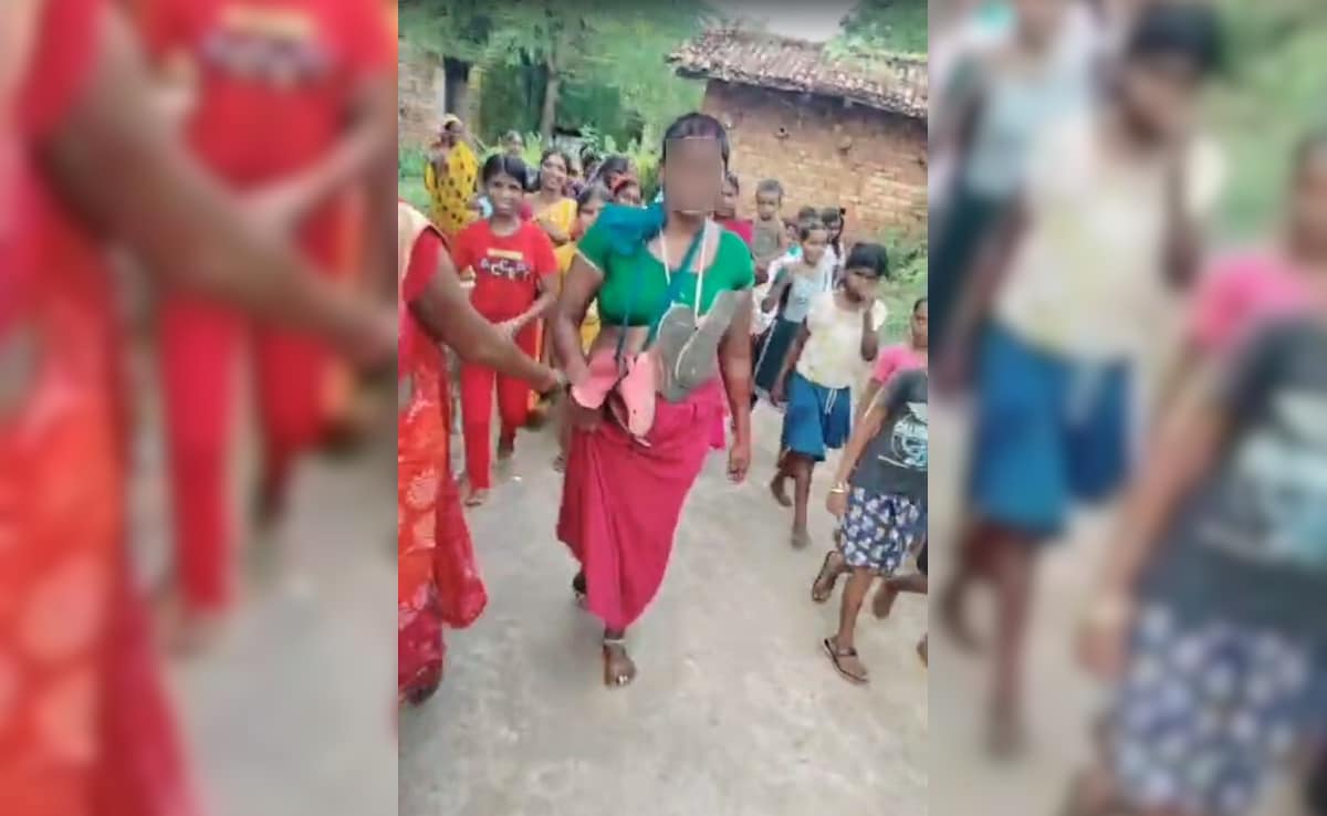 A woman was thrashed, her hair cut, and then she was paraded around the village in a half-naked state with a garland of slippers slung around her neck, shows a disturbing video from Jharkhand.
